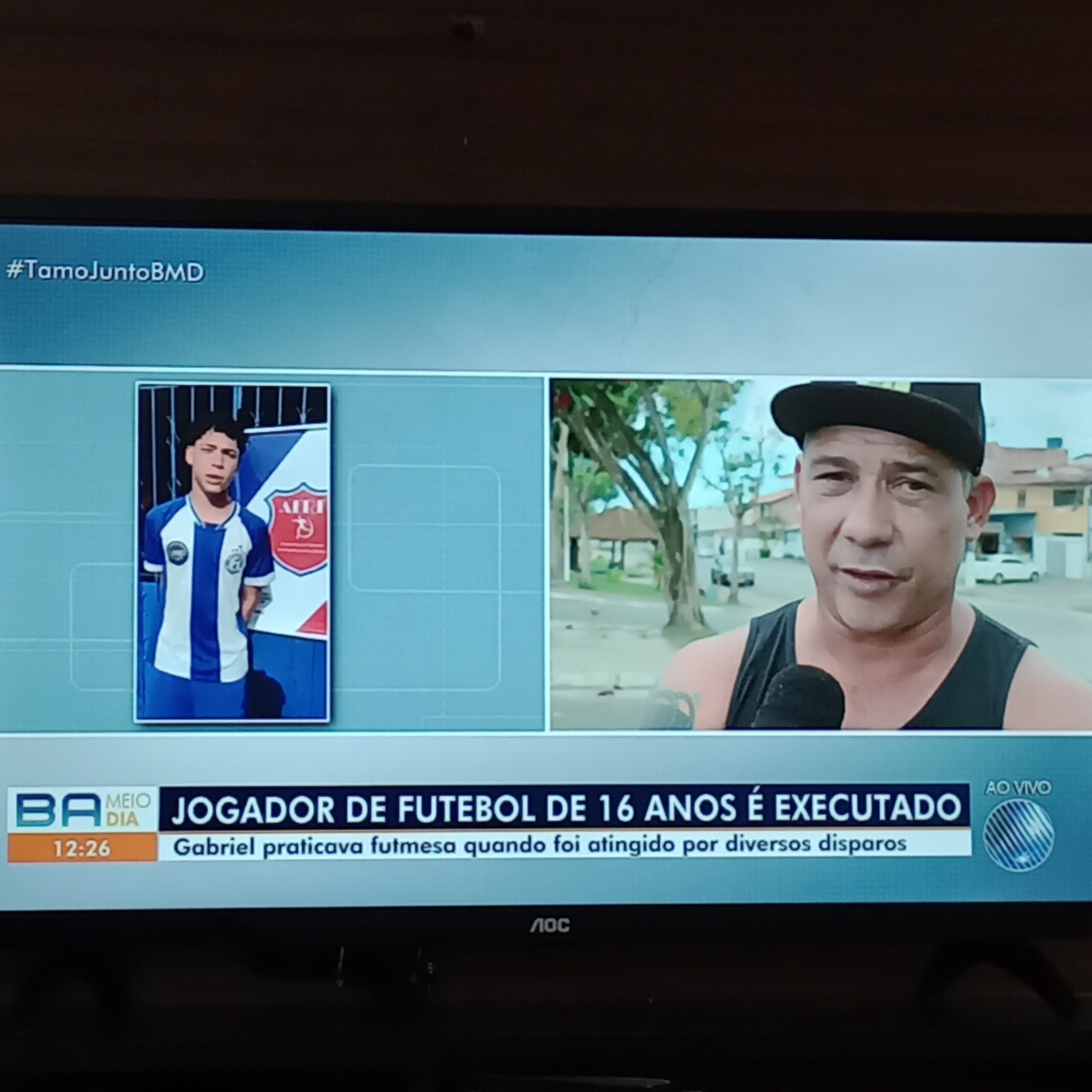 o jovem Gabriel foi assassinado quando jogava futebol de mesa com com os amigos. Segundo o pai dele, dois homens chegaram atirando em uma moto. A motivação e autoria ainda são desconhecidas pela família e pala polícia local.