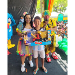 Teve ainda piscina de bola, castelos, maquiagem com desenhos que retratam a infância e o mundo lúdico. Não faltou a animação do Palhaço Xaveco e sua turma com muito doces, pipocas e risadas no dia da criança em Cruz das Almas.